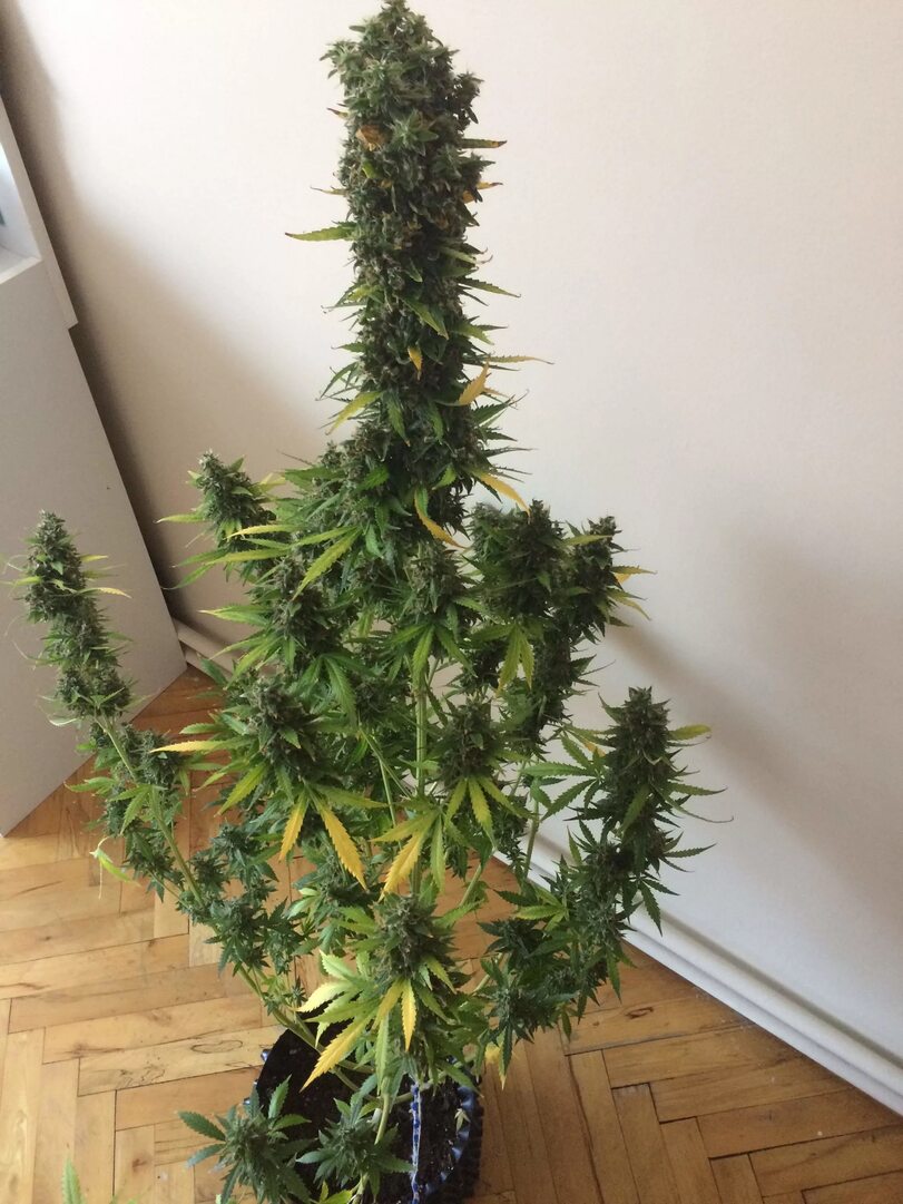 Сортец хорош, немного стресанул из-за перелива, а потом попёр, на фото 84 дня, поливал два раза селитрой, потом два раза, потом янтарной кислотой, вес шишек 136грамм