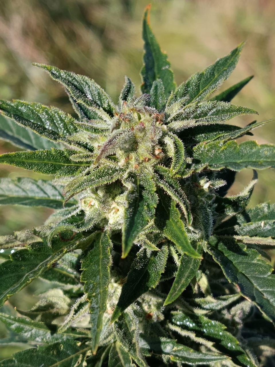 Растёт в не лучших условиях, но растёт. Кустик не такой ветвистый как хотелось бы. Погода еле тёплая, перепады температуры и дожди(. На последнем фото 7 недель. Запах классный, начал цвести, сорвал 1 листочек, попробую сегодня)
