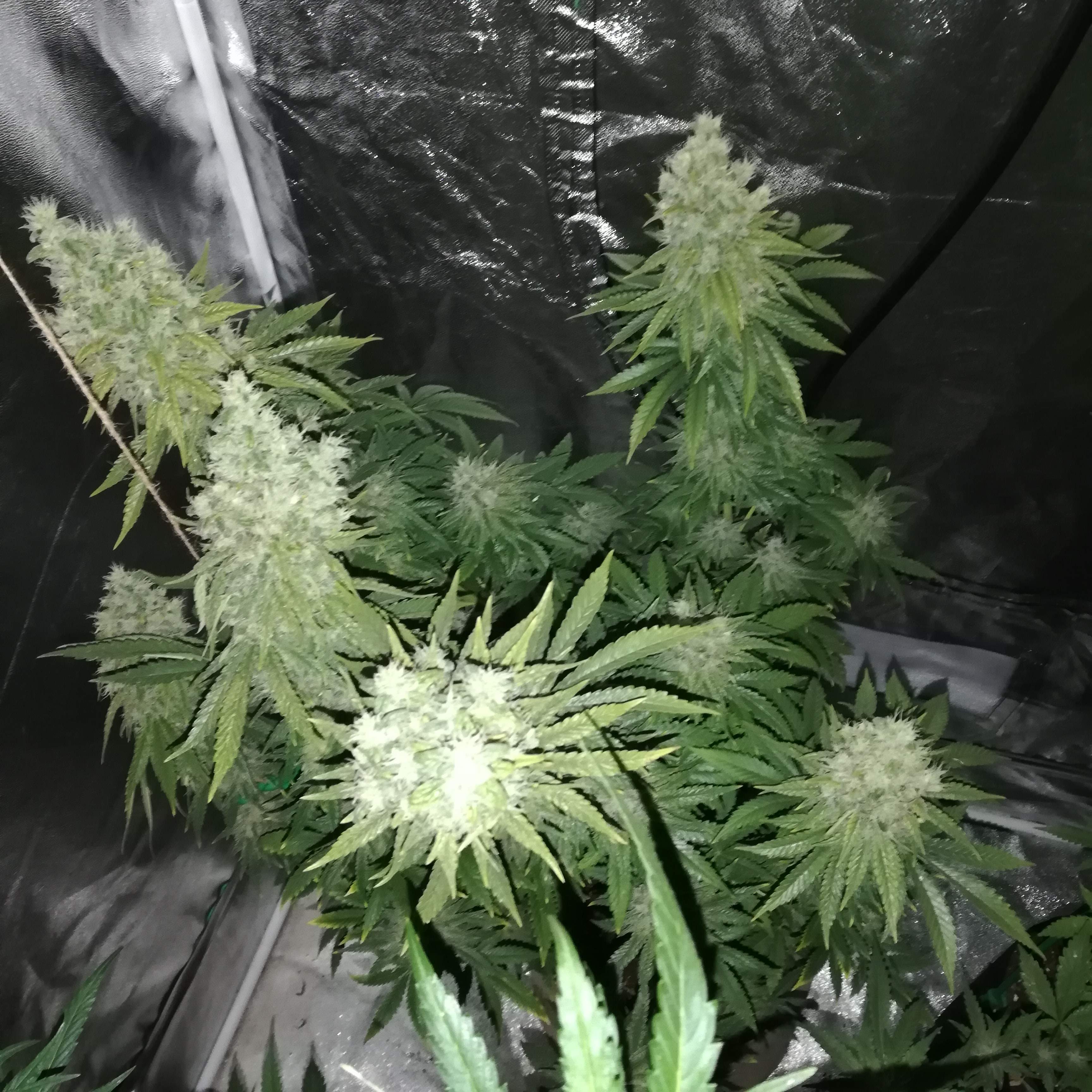 Один из моих любимых автиков. Живучий, скосил куст, случайно оторвал центральную колу, оставив первые 4 побега. Но горила справилась, дала еще 22 небольших побега и по итогу вымыхала в такой пышный куст, что если бы случайно не резанул то урожай был бы мега большим, но и так дала большем чем любой другой автоцвет) На счёт эффекта, более мощного пока еще ничего не курил, давал пробовать своим, все присели с колпака)))